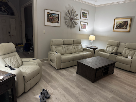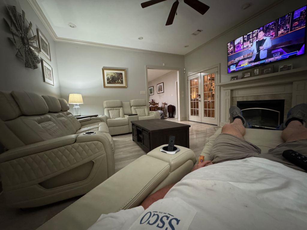 I finally broke down and upgraded our living room furniture. I’m in love with this new setup. Each seat has heat and massage.